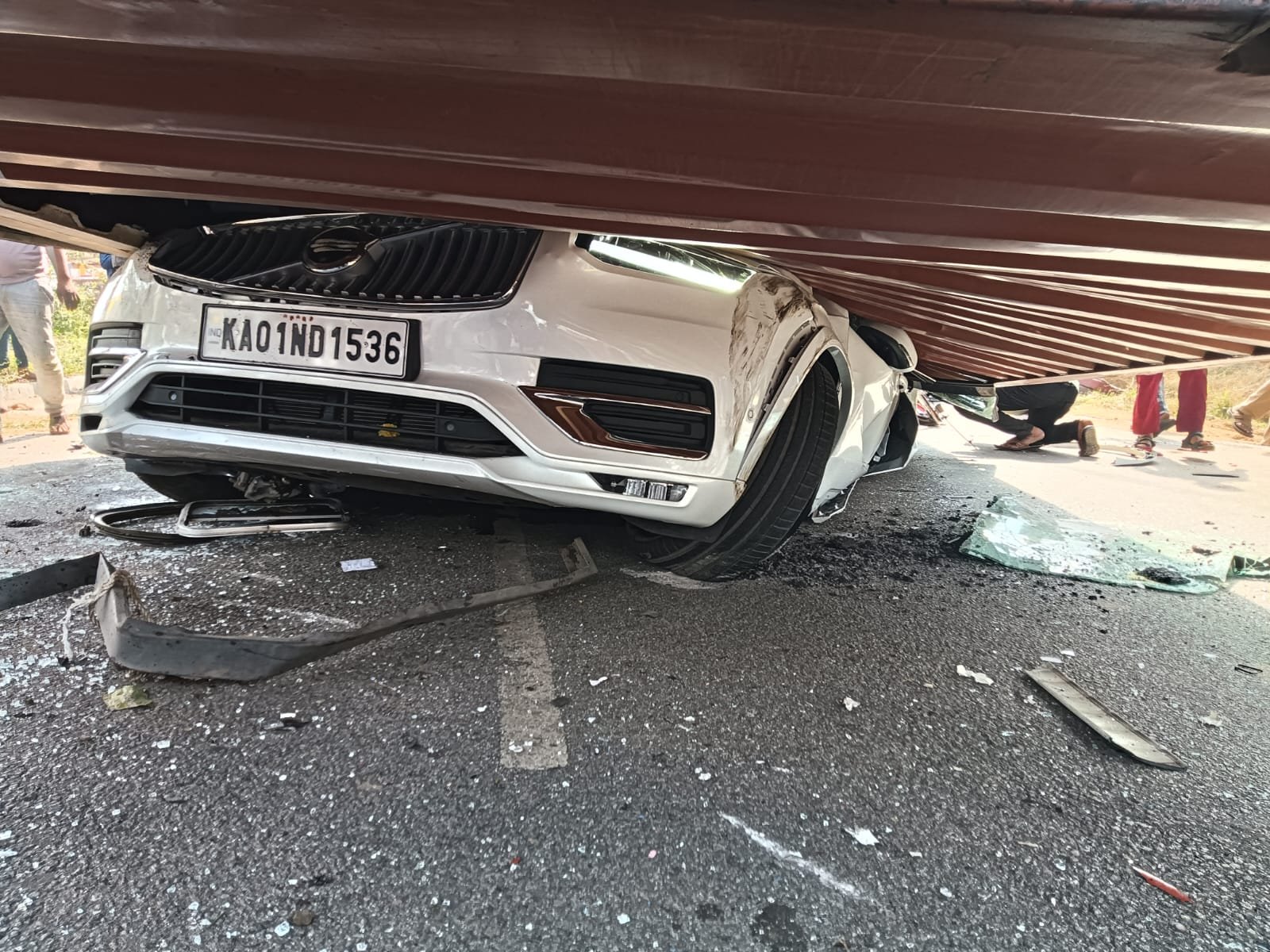 ಬೃಹತ್ ಗಾತ್ರದ ಕಂಟೇನರ್ ಚಲಿಸುತ್ತಿರುವ ಚಾಲಕ, ಒಂದು ಕಾರನ್ನ ತಪ್ಪಿಸಲು ಹೋಗಿ, ಎಡಭಾಗಕ್ಕೆ ಚಲಿಸಿದ್ದರಿಂದ ಈ ಕಾರ್ ನ ಮೇಲೆ ಕಂಟೇನರ್ ಬಿದ್ದು ಅಪಘಾತ ಸಂಭವಿಸದೆ. ನೆಲಮಂಗಲ ಪೊಲೀಸ್ ಠಾಣೆ ವ್ಯಾಪ್ತಿಯಲ್ಲಿ ಪ್ರಕರಣ ಜರುಗಿದೆ.
