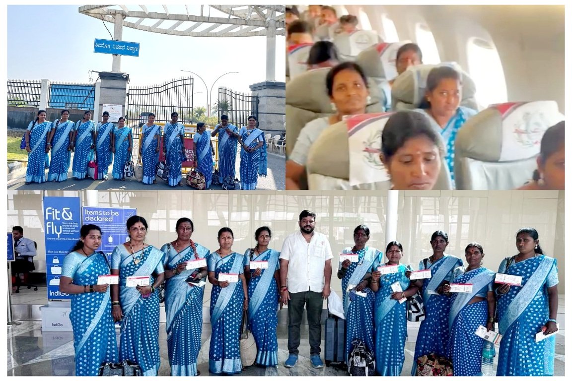 ವಿಜಯನಗರ ಜಿಲ್ಲೆಯ ಹರಪ್ಪನಹಳ್ಳಿ ತಾಲ್ಲೂಕಿನ ಶಿರಗನಹಳ್ಳಿ ರೈತ ವಿಶ್ವನಾಥ್ ರಿಂದ ಮಹಿಳಾ ಕೂಲಿ ಕಾರ್ಮಿಕರಿಗೆ ವಿಮಾನ ಭಾಗ್ಯ ದೊರೆತಿದೆ.