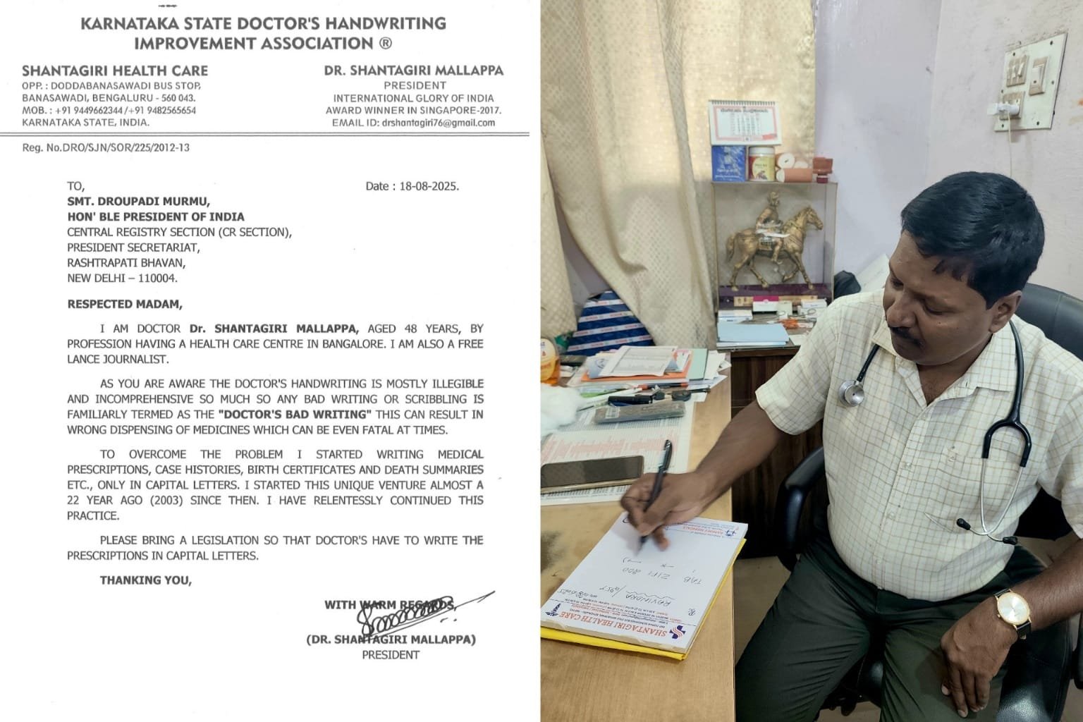 ಎಲ್ಲಾ ವೈದ್ಯರು ಶುದ್ಧ ಕೈಬರಹದಲ್ಲಿ, ದೊಡ್ಡ ಅಕ್ಷರಗಳಲ್ಲಿ ಪ್ರಿಸ್ಕ್ರಿಪ್ಷನ್ ಬರೆಯುವಂತೆ ಕಾನೂನು ತರಬೇಕು: ರಾಷ್ಟ್ರಪತಿಗೆ ಗದಗ ಮೂಲದ ವೈದ್ಯರೊಬ್ಬರ ಪತ್ರ..