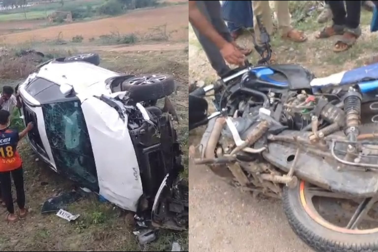ಅಪಘಾತದ ರಭಸಕ್ಕೆ ಕಾರು ಪಲ್ಟಿ ಹೊಡೆದು ರಸ್ತೆ ಪಕ್ಕಕ್ಕೆ ಉರುಳಿ ಬಿದ್ದಿದ್ದು, ಘಟನೆಯಲ್ಲಿ ಬೈಕ್ ಸವಾರ ಹಾಗೂ ಕಾರಿನಲ್ಲಿ ಪ್ರಯಾಣಿಸುತ್ತಿದ್ದವರಿಗೆ ತೀವ್ರ ಗಾಯಗಳಾಗಿವೆ.