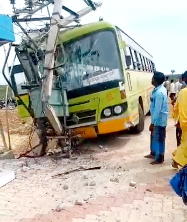 ವಿದ್ಯುತ್ ಕಂಬಕ್ಕೆ ಸಾರಿಗೆ ಬಸ್ ಡಿಕ್ಕಿ: ಅದೃಷ್ಟವಶಾತ್ ಪ್ರಾಣಾಪಾಯದಿಂದ ಪಾರು!