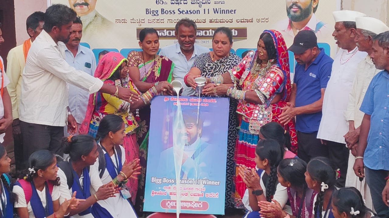 ಗದಗ: ತಾಲೂಕಿನ ಬೆಳದಡಿ ಗ್ರಾಮದ ಬ್ರಹ್ಮಾನಂದಪುರ ತಾಂಡಾದಲ್ಲಿ ಕಲರ್ಸ್ ಕನ್ನಡ ವಾಹಿನಿಯ ಬಿಗ್ಬಾಸ್ 11ನೇ ಆವೃತ್ತಿಯಲ್ಲಿ ವಿಜಯಶಾಲಿಯಾಗಿ ಉತ್ತರ ಕರ್ನಾಟಕದ ಕೀರ್ತಿಯನ್ನು ಹೆಚ್ಚಿಸಿದ ಹನುಮಂತ ಲಮಾಣಿ ಅವರ ಭಾವಚಿತ್ರಕ್ಕೆ ಶ್ರೀಸೇವಾಲಾಲ್ ಯುವಕ ಮಂಡಳದವರು ಕ್ಷೀರಾಭಿಷೇಕ ಮಾಡಿ ಸಂಭ್ರಮಿಸಿದರು.