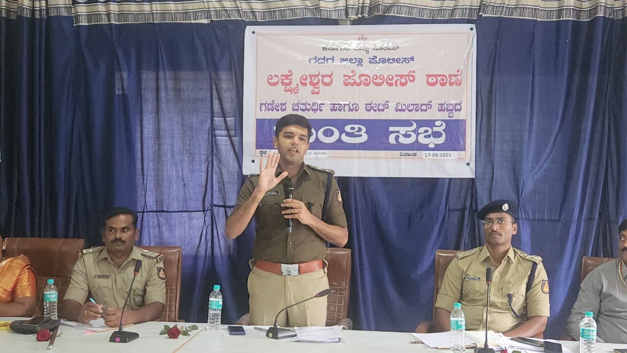 ಲಕ್ಷ್ಮೇಶ್ವರ: ಗೌರಿ ಗಣೇಶ ಹಾಗೂ ಈದ್ ಮಿಲಾದ್ ಹಬ್ಬಗಳು ಈ ಬಾರಿಯೂ ಒಟ್ಟೊಟ್ಟಿಗೆ ಬಂದಿದ್ದು, ಹಬ್ಬಗಳನ್ನು ಪರಿಸರ ಸ್ನೇಹಿಯಾಗಿ, ಶಾಂತಿಯುತವಾಗಿ ವಿಜೃಂಭಣೆಯಿಂದ ಆಚರಿಸಲು ಪ್ರತಿಯೊಬ್ಬರೂ ಸಹಕರಿಸಬೇಕು ಎಂದು ಗದಗ ಜಿಲ್ಲಾ ಪೋಲಿಸ್ ವರಿಷ್ಠಾಧಿಕಾರಿ ರೋಹನ ಜಗದೀಶ್ ಹೇಳಿದರು.
