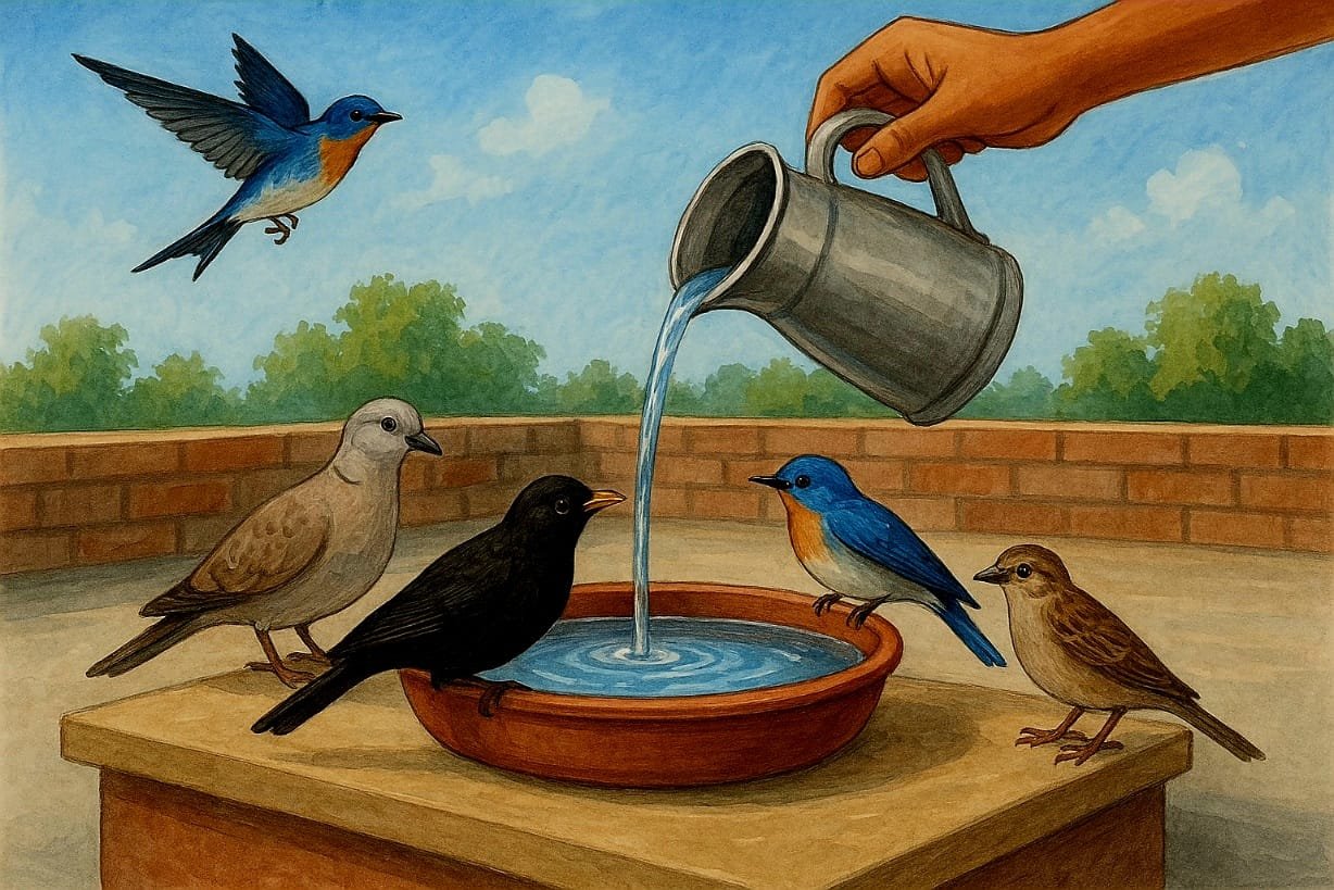 ದೈನಂದಿನ ಬಳಕೆಗೆ ನೀರನ್ನು ಅತಿಯಾಗಿ ಪೋಲು ಮಾಡುತ್ತೇವೆ. ಅದರ ಒಂದು ಭಾಗವನ್ನು ಪ್ರಾಣಿ–ಪಕ್ಷಿಗಳಿಗೆ ನೀಡುವುದರಿಂದ ಜೀವದಾನ ಮಾಡಬಹುದು.