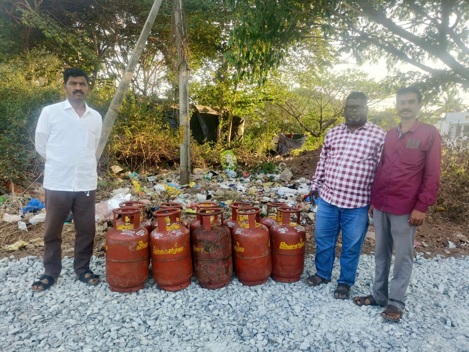 ನಗರದ ಕಳಸಾಪುರ ರಸ್ತೆ ಸಮೀಪದ ನಿರ್ಜನ ಪ್ರದೇಶದಲ್ಲಿ ವಾರಸುದಾರರಿಲ್ಲದ ಹತ್ತು ಗ್ಯಾಸ್ ಸಿಲಿಂಡರ್ಗಳನ್ನು ಆಹಾರ ಮತ್ತು ನಾಗರಿಕ ಸರಬರಾಜು ಇಲಾಖೆ ಅಧಿಕಾರಿಗಳು ವಶಪಡಿಸಿಕೊಂಡಿದ್ದಾರೆ.