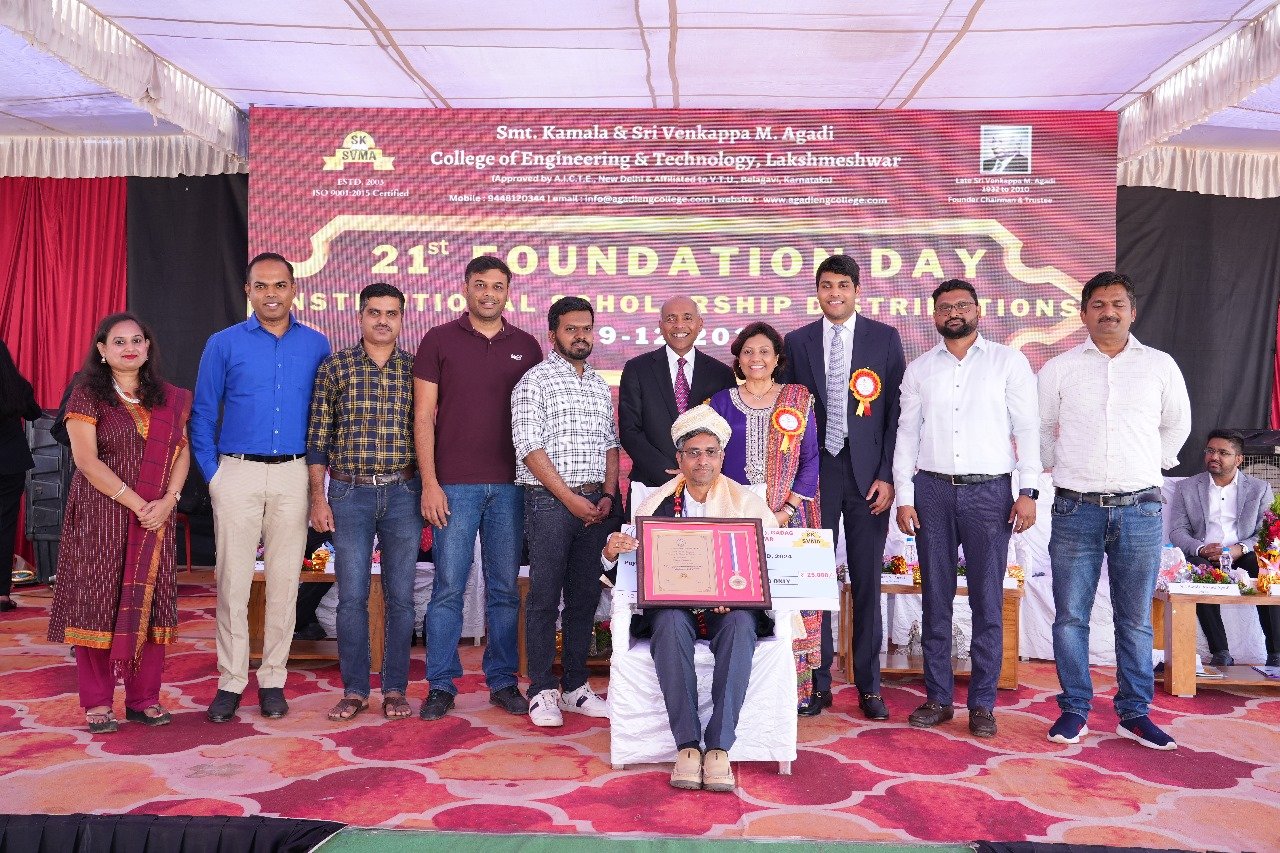 ಲಕ್ಷ್ಮೇಶ್ವರ: ನಮನ ಟ್ರಸ್ಟ್ ,ಗದಗ ಹಾಗೂ ಶ್ರೀಮತಿ.ಕಮಲಾ ಮತ್ತು ಶ್ರೀ.ವೆಂಕಪ್ಪ ಎಂ. ಅಗಡಿ ಇಂಜನೀಯರಿಂಗ್ ಕಾಲೇಜು ಲಕ್ಷ್ಮೇಶ್ವರ ಸಹಯೋಗದಲ್ಲಿ 21ನೇ ಅಗಡಿ ಕಾಲೇಜು ಸಂಸ್ಥಾಪನಾ ದಿನಾಚರಣೆಯಂದು 2024-25 ನೇ ಸಾಲಿನ ಪ್ರೊ. ವಿ. ಕೆ. ಕುಷ್ಟಗಿ-ಉತ್ತಮ ಶಿಕ್ಷಕ ಪ್ರಶಸ್ತಿಯನ್ನು ಮಹಾವಿದ್ಯಾಲಯದ ಗಣಕಯಂತ್ರ ವಿಭಾಗದ ಸಹಾಯಕ ಪ್ರಾಧ್ಯಾಪಕ ಹಾಗೂ ಆಡಳಿತಾಧಿಕಾರಿ ಪ್ರೊ. ವಿಕ್ರಮ ಶಿರೋಳ ಅವರಿಗೆ ನೀಡಿ ಗೌರವಿಸಲಾಗಿದೆ.