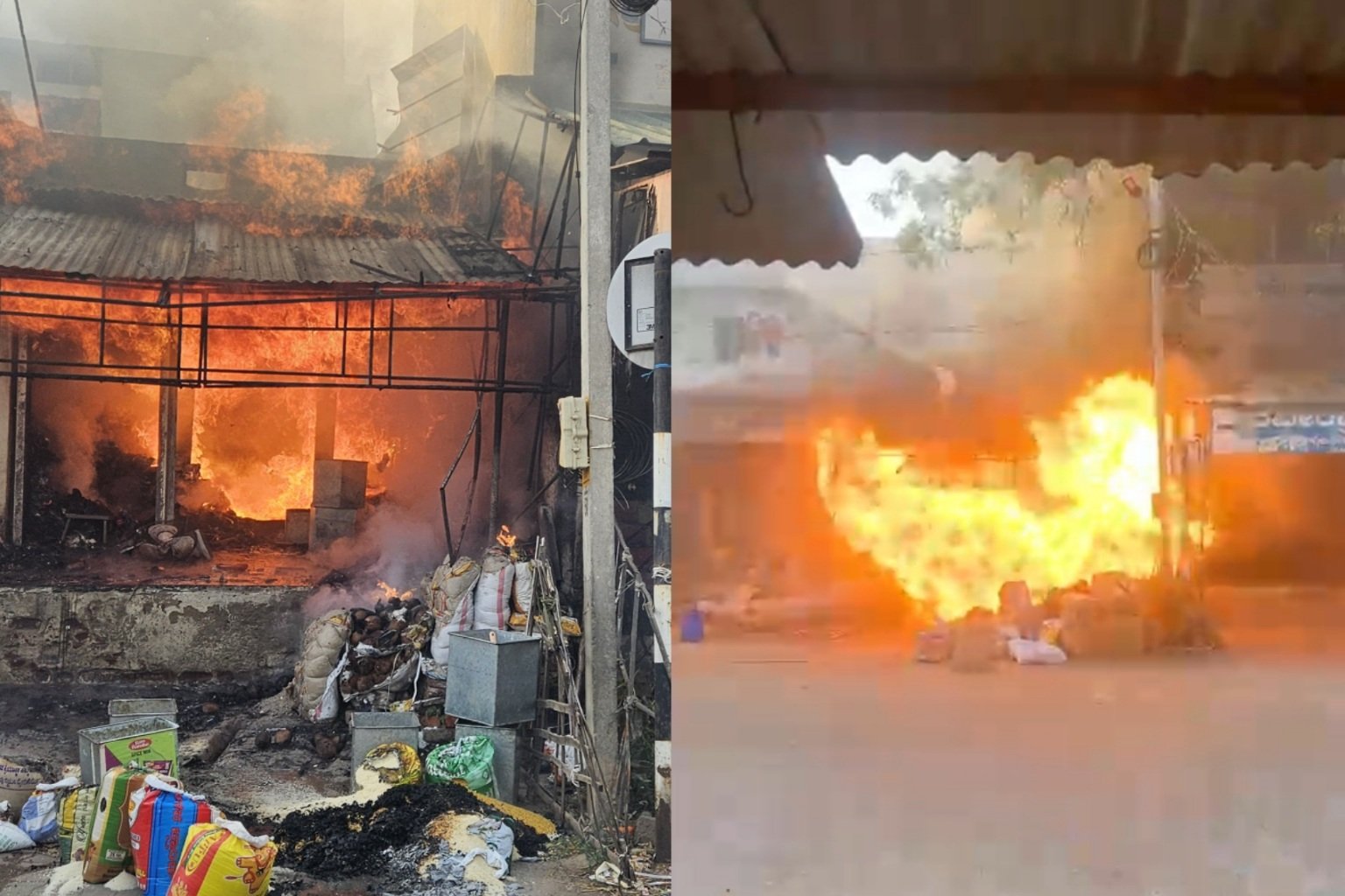 ಶಾರ್ಟ್ ಸರ್ಕ್ಯೂಟ್‌ನಿಂದ ಕಿರಾಣಿ ಅಂಗಡಿಗೆ ಬೆಂಕಿ..! ಬೆಂಕಿಯ ತೀರ್ವತೆಗೆ ಅಂಗಡಿಯಲ್ಲಿದ್ದ ವಸ್ತುಗಳು ಸ್ಪೋಟ..! ಲಕ್ಷಾಂತರ ರೂಪಾಯಿ ಮೌಲ್ಯದ ವಸ್ತುಗಳು ಸುಟ್ಟು ಭಸ್ಮ..!
