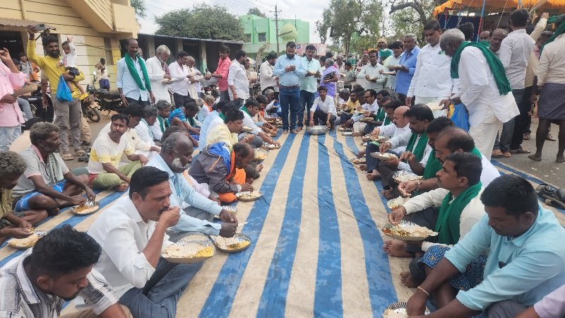 ಇಂದು ಎಂಟನೇ ದಿನವಾದ ಶನಿವಾರ ಪಟ್ಟಣದ ಹಳ್ಳದಕೇರಿ ಓಣಿಯ ರೈತರು, ರೈತರಿಗಾಗಿ ಮೊಸರಣ್ಣ, ರೊಟ್ಟಿ, ಶೇಂಗಾ ಚಟ್ನಿ, ಬದನೆಕಾಯಿ ಪಲ್ಲೆ ಮತ್ತು ಪುಂಡಿ ಪಲ್ಲೆ ವ್ಯವಸ್ಥೆ ಮಾಡಿದ್ದರು, ರೈತರು ಪಾಲಾ-ಬಾದಾಮಿ ರಾಜ್ಯ ಹೆದ್ದಾರಿಯಲ್ಲಿ ಕುಳಿತು ಊಟ ಮಾಡುತ್ತಿರುವ ದೃಶ್ಯ ರೈತರು ತಮ್ಮ ಜಮಿನುಗಳಲ್ಲಿ ರೊಟ್ಟಿ ಗಂಟು ಕಟ್ಟಿಕೊಟ್ಟು ಊಟ ಮಾಡಿದ ಅನುಭವ ಎಲ್ಲರ ದೃಷ್ಠಿ ನೆಟ್ಟುವಂತಿದ್ದು.